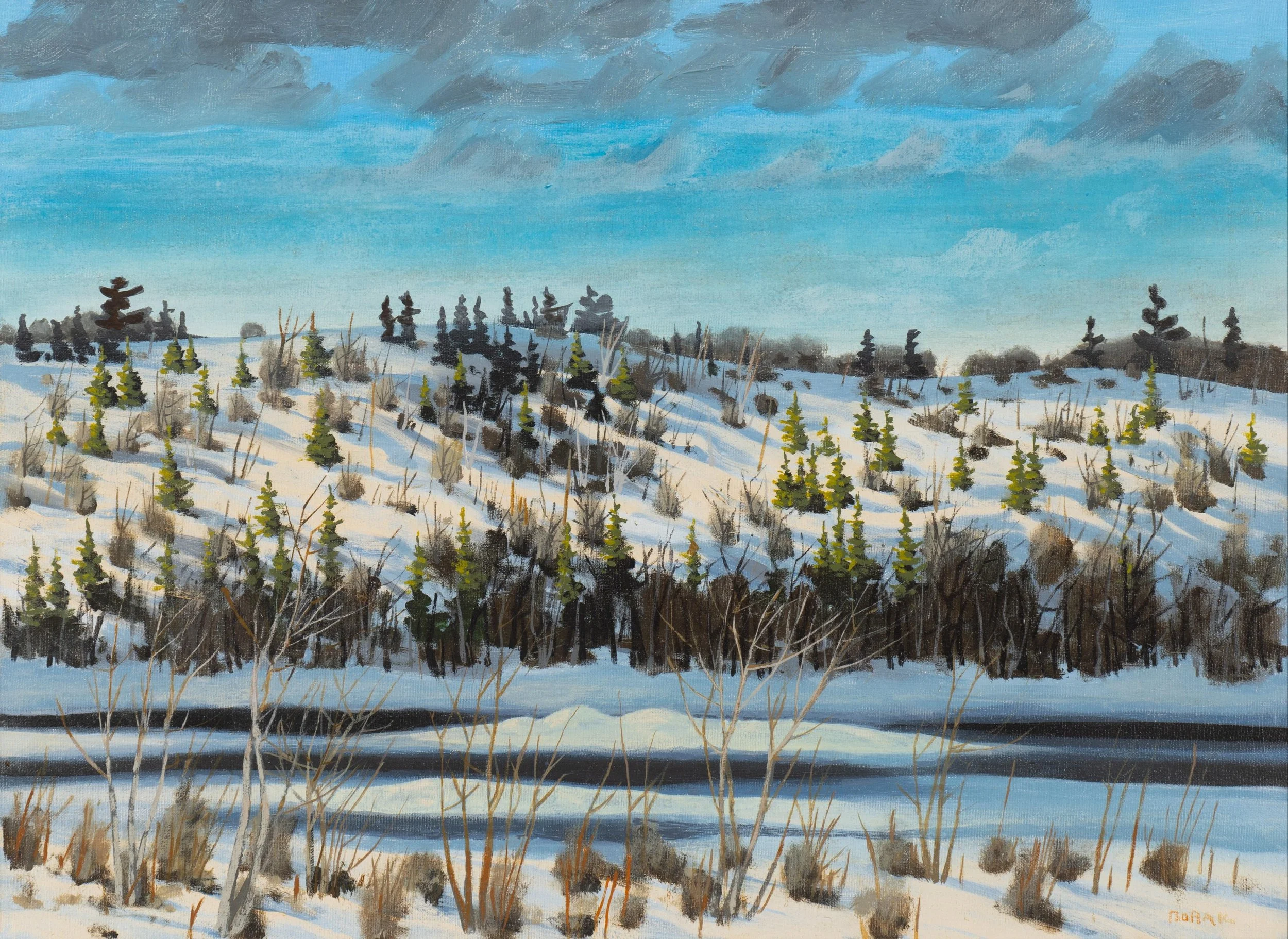 Bruno Joseph Bobak (Canadian, 1923-2012) was an important Canadian painter, printmaker and muralist. Bobak was born in 1923 in Poland, and immigrated to Canada with his family in 1925. He studied with Group of Seven member Arthur Lismer at the Art Gallery of Toronto in the 1930s, and served as an official war artist during World War II. He married fellow war artist Molly Lamb in 1945. Bobak moved to Fredericton, New Brunswick, in the 1960s to serve as the artist in residence and later the director of the Arts Centre at the University of New Brunswick. A number of Bobak's paintings are included in the National Gallery of Canada permanent collection.